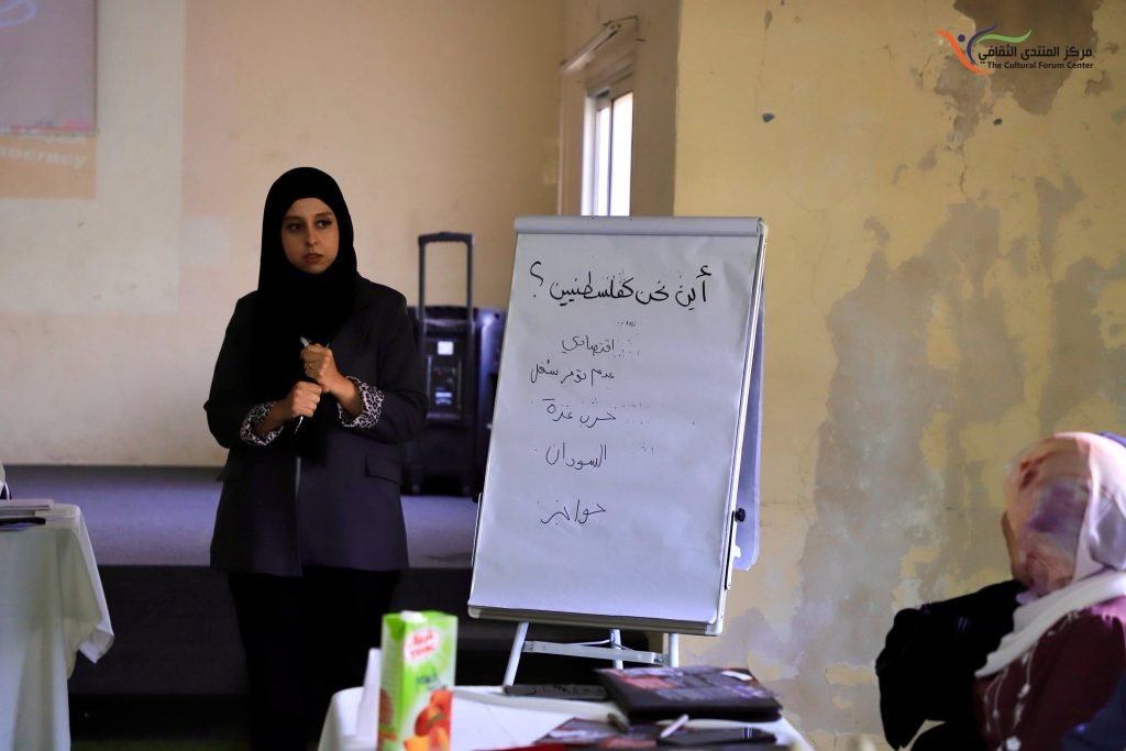 نظّم مركز المنتدى الثقافي بالشراكة مع المركز الفلسطيني لقضايا السلام والديمقراطية، جلسة حوارية بعنوان “أين نحن كفلسطينيين؟”، وذلك ضمن أنشطة مشروع مشاركة الشابات الفلسطينيات في حل الصراعات.